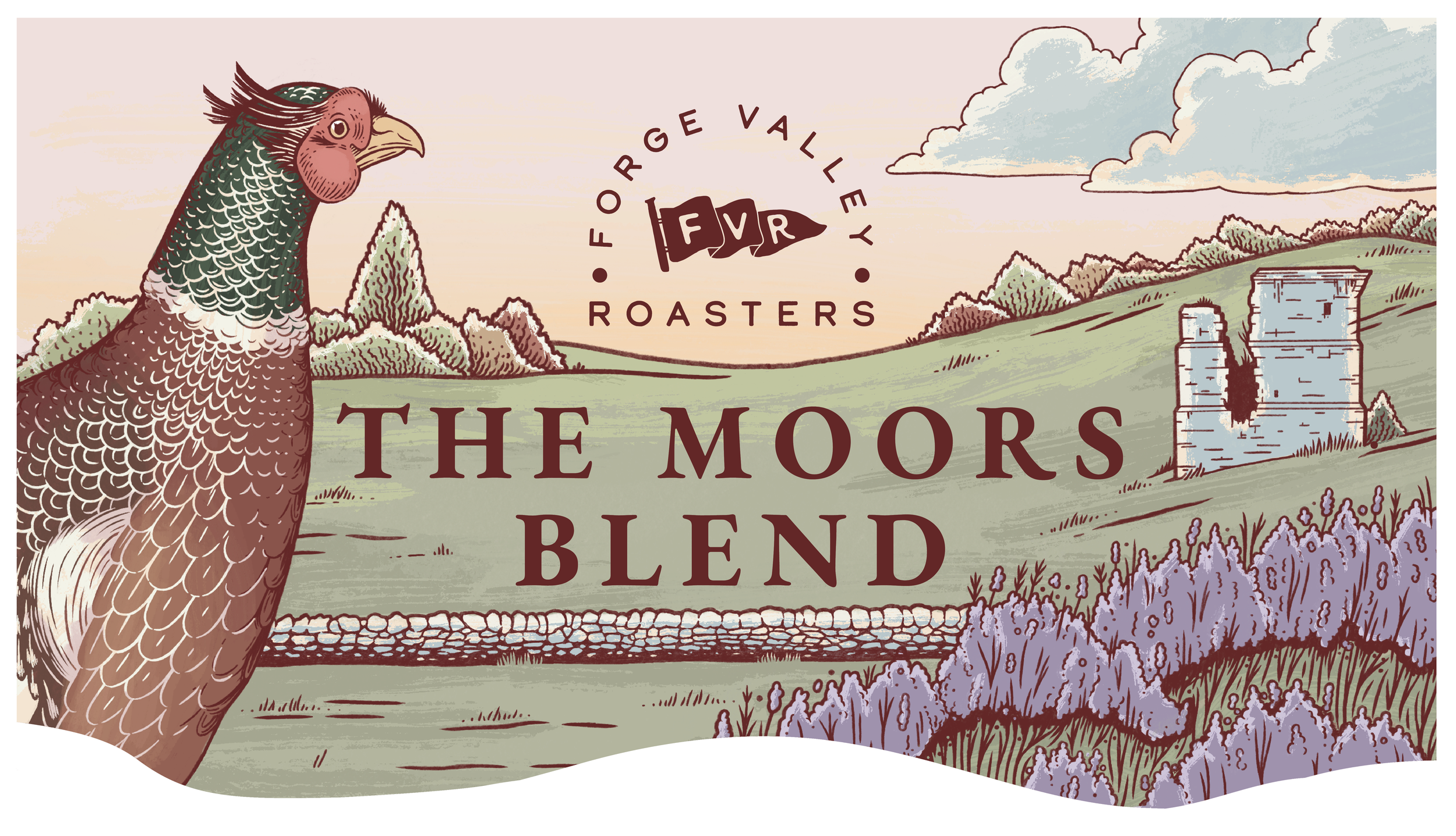FVR required an eye-catching illustration that represents the beautiful Forge Valley location where their roastery and brew bar are located. The illustration would need to be versatile enough to be applied to a number of different printed and digital placements, including on the company’s social media pages as well as on labels for coffee bean packaging.